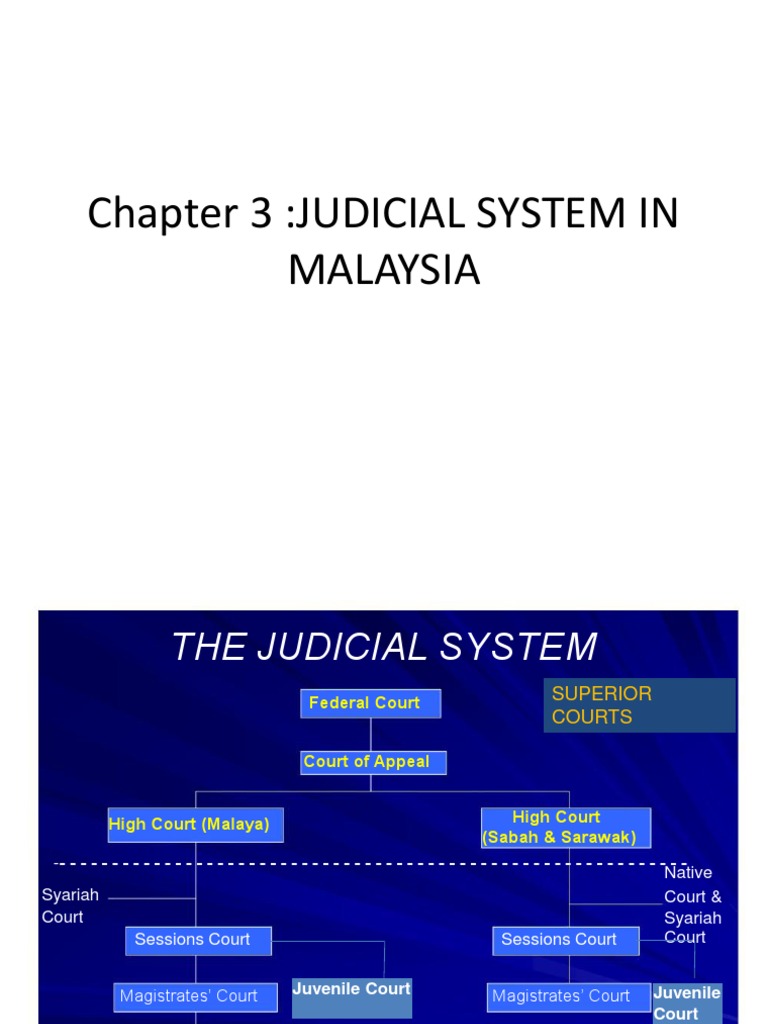 Dewan undangan negeri) whose members. Malaysia has a unified judicial system, and all courts take cognizance of both federal and state laws. • the hierarchy of courts in malaysia is comprised of the subordinate courts and the • enforcement of civil judgments under malaysian law is vested under the powers conferred section 17 of the courts of judicature act 1964 act 91. As malaysia has inherited the common law system of the british, it will come as no surprise to find that we are facing similar issues and problems in the context of our own judicial system. The subordinate courts subfield lists the courts lower in the hierarchy of a country's court system. Further details on the principles of statutory interpretation in malaysia are available in ahmad, sharifah suhana, malaysian legal system (2nd the author's analysis of reports and media releases from the companies commission of malaysia and judicial decisions indicates that substantially fewer. Although malaysia inherited the political system of british india based on the westminster system, which made no provision for judicial review, the federal constitution of malaysia instituted a system based on that of india which was in turn influenced by other constitutions including that of the united. As in most legal systems in malaysia itself, appointments are in the hands of the executive. What is the impact of the judicial interpretation to the medical practice or healthcare system in malaysia? Each state governments in malaysia is created by the respective state constitutions. The opinion formed in this is the personal opinion of the writer. There have in recent years been proposals for reform of the judicial system, in order to give it more independence from government. Crash course government and politics #21.